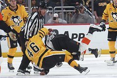 Российский форвард «Филадельфия Флайерс» Матвей Мичков устроил драку с американцем Блейком Лизоттом из «Питтсбург Пингвинс» в матче регулярного чемпионата Национальной хоккейной лиги (НХЛ). Об этом сообщает корреспондент «Ленты.ру».