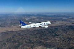 Образец импортозамещенного МС-21 был запущен для тестирования работы новых систем и двигателей ПД-14. Самолет находился в воздухе около часа, достигая высоты до 3500 метров.